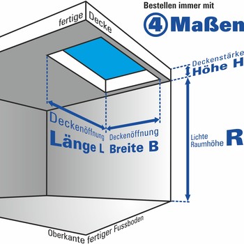 Sparen Sie sich Anpassen oder Absägen. Vermeiden Sie Stolperfallen und Pfusch am Bau. Bestellen Sie mit Ihren tatsächlichen 4 Baumaßen einfach die passende, DIN-gerechte Bodentreppe: