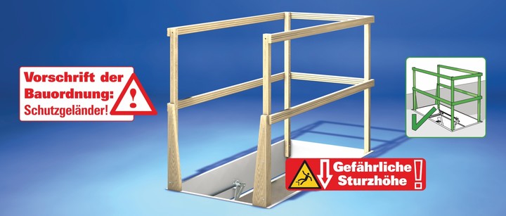 Denken Sie an die Benutzersicherheit. Beim Begehen der Bodentreppen gibt ein Handlauf zusätzlichen Halt und ist deshalb in der DIN empfohlen.