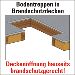 Die Bodentreppe unterbricht die Brandschutzdecke auf einer Fläche von rund 1 m2. Dieses "Loch" darf nicht ungeschützt bleiben. Der geforderte Brandschutz für die Decke gilt auch für die Bodentreppe. Und die Einbaufuge. Mit Wellhöfer FeuerSchutz-Bodentreppen haben Sie immer die passende Lösung: