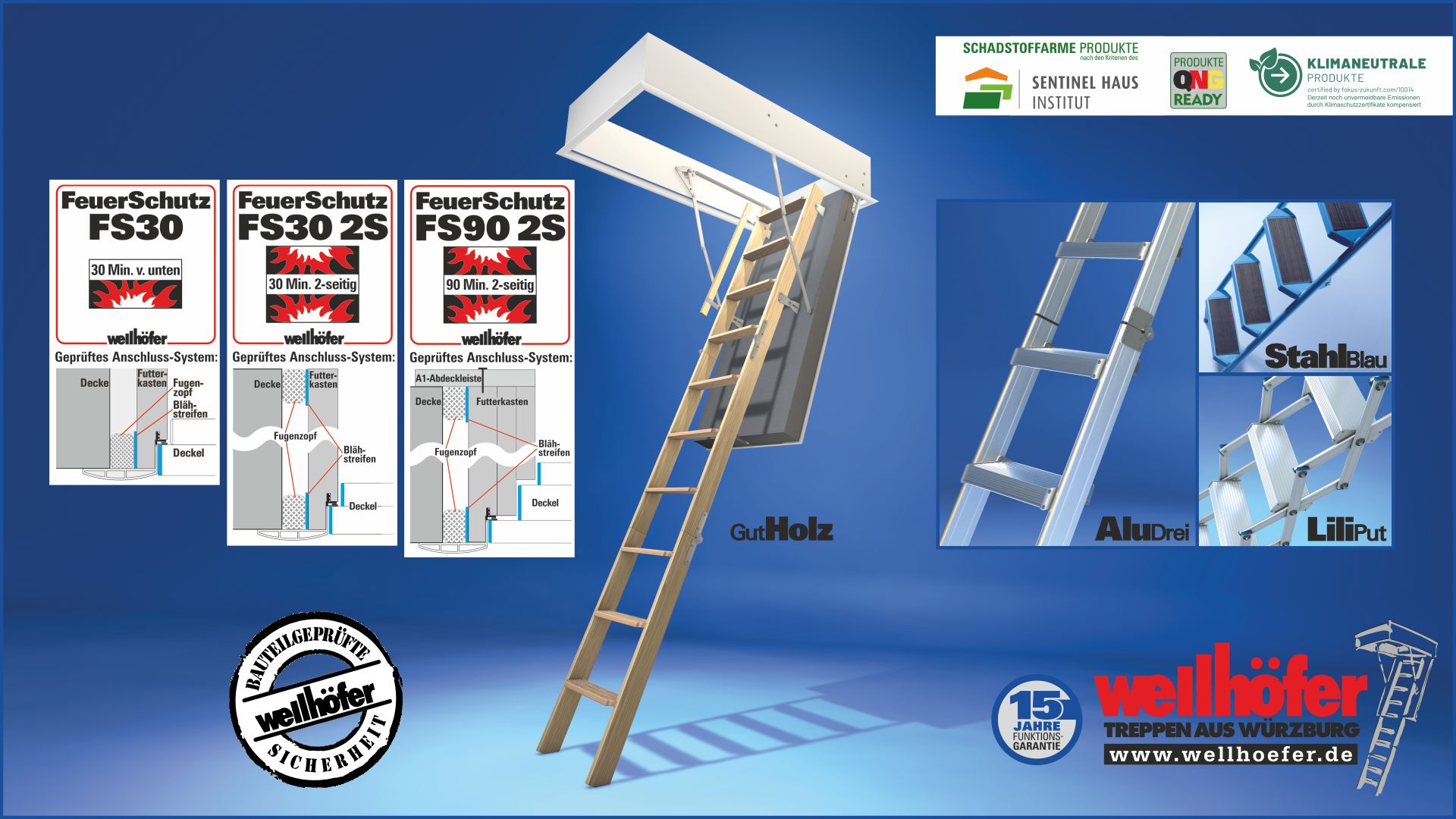 Wellhöfer Bodentreppen für Brandschutzdecken: Immer der passende FeuerSchutz.