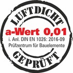 Dichtheit Bodentreppe und Deckenanschluss-System: Klasse 4 und a-Wert = 0,01 m3/hm(daPa2/3) geprüft, in Anl. DIN EN 12207 / DIN EN 1026:2016-09, PfB Prüfzentrum für Bauelemente