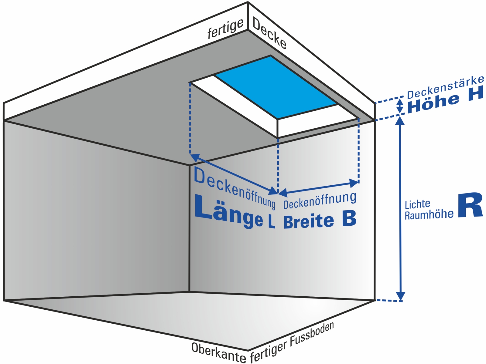 - Deckenstärke (sorgt für die passende Futterkastenhöhe und ggf. DIN-gerechte Zusatzstufe/n)