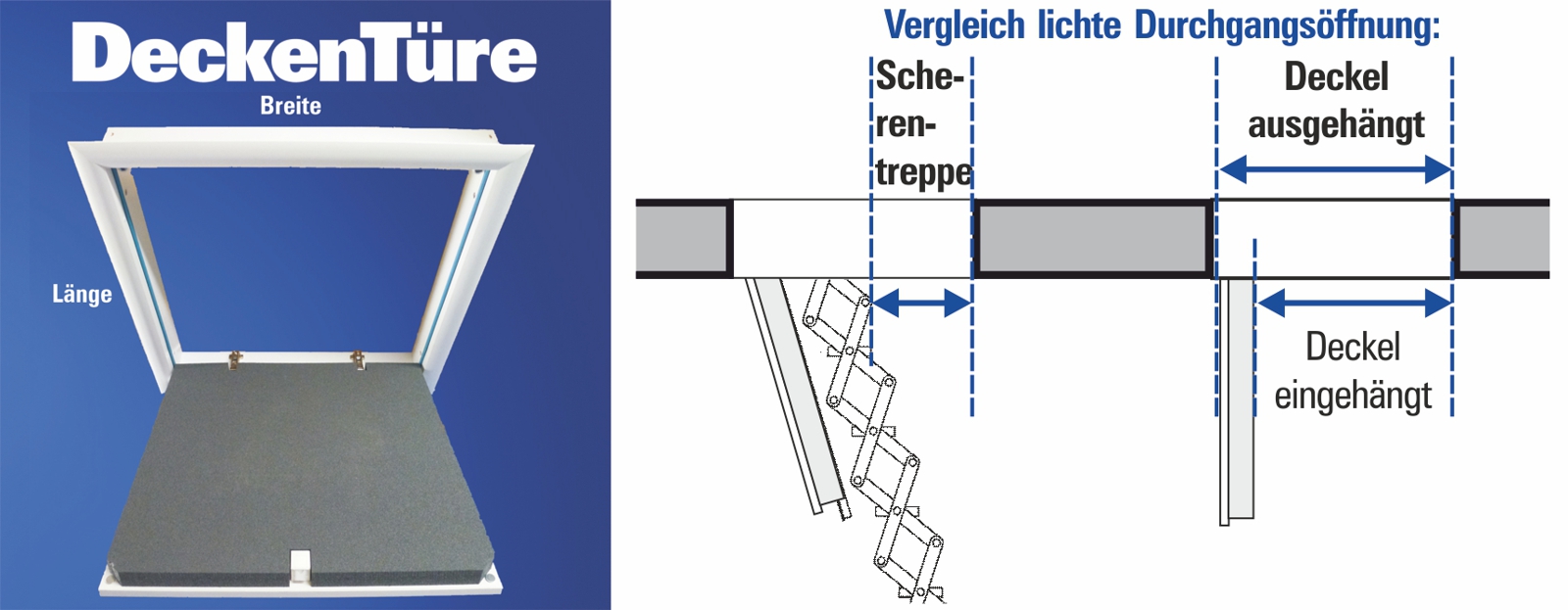 Hinweis: Deckentüren Normgrößen 50 x 50 cm, 60 x 60 cm.
