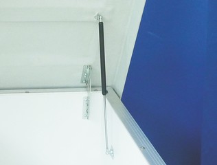 Das leichte GFK-Satteldach (leicht wie Alu, stabil wie Stahl) ist selbstöffnend durch Gasdruckfedern. Die beidseitige Verriegelung ist für ein Profilzylinder-Schloss vorbereitet. Das Ein- und Aussteigen erleichtert eine serienmäßige Zusatzstufe. Auf Gehrung und umlaufend oben am Rahmen sorgt das Wetterschutzprofil aus Aluminium für den sauberen Abschluss.