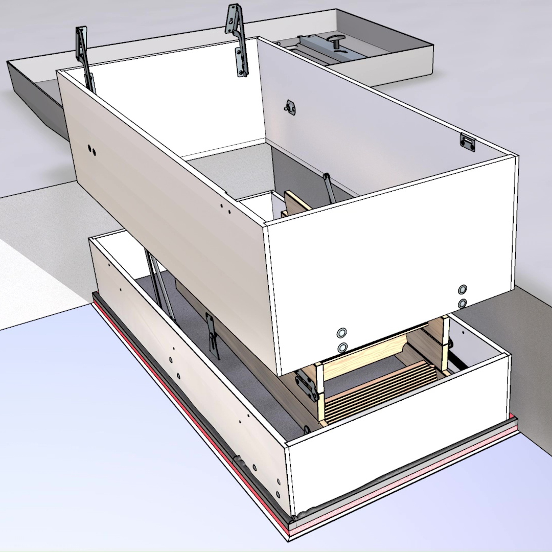 Die Kastenhöhe des FlachdachAusstiegfutters, der auf den Futterkasten der Bodentreppe aufgesetzt wird, beträgt immer 42 cm.