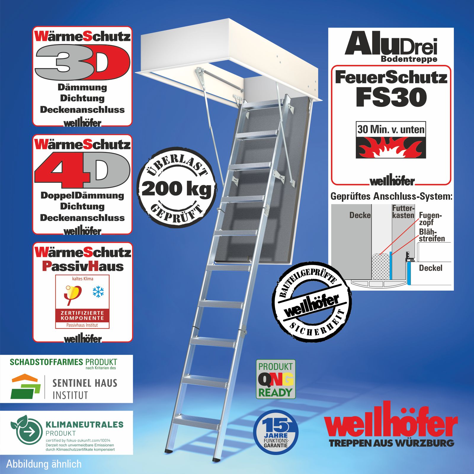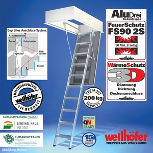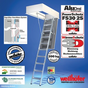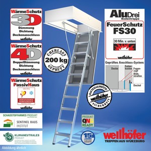 Bodentreppen AluDrei mit FeuerSchutz FS30 (Feuerwiderstand 30 Minuten von unten)
