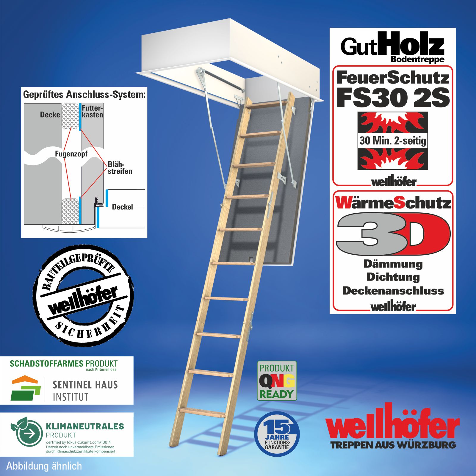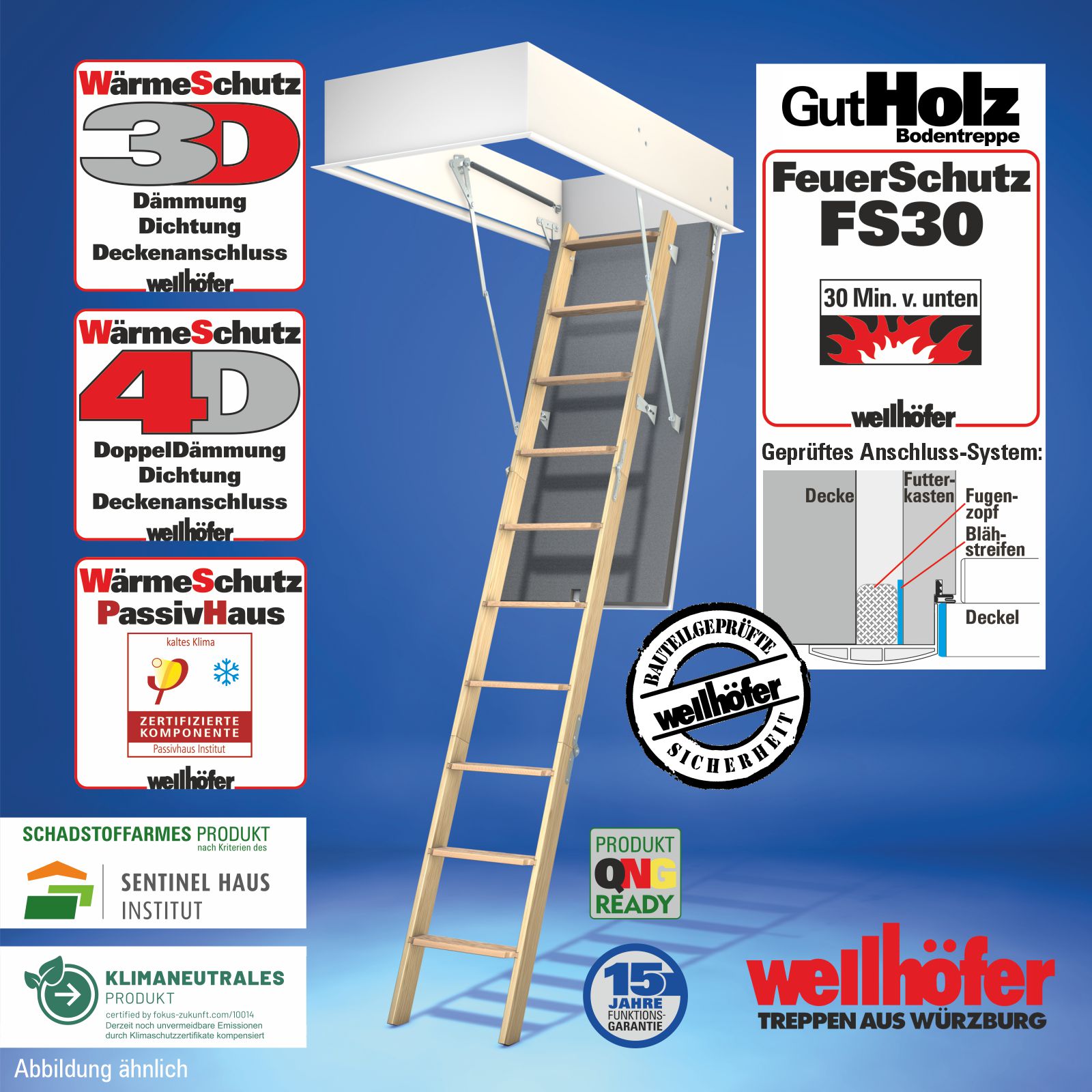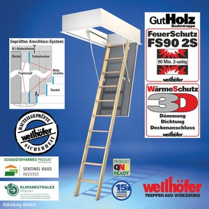 Bodentreppen GutHolz mit FeuerSchutz FS30 (Feuerwiderstand 30 Minuten von unten)