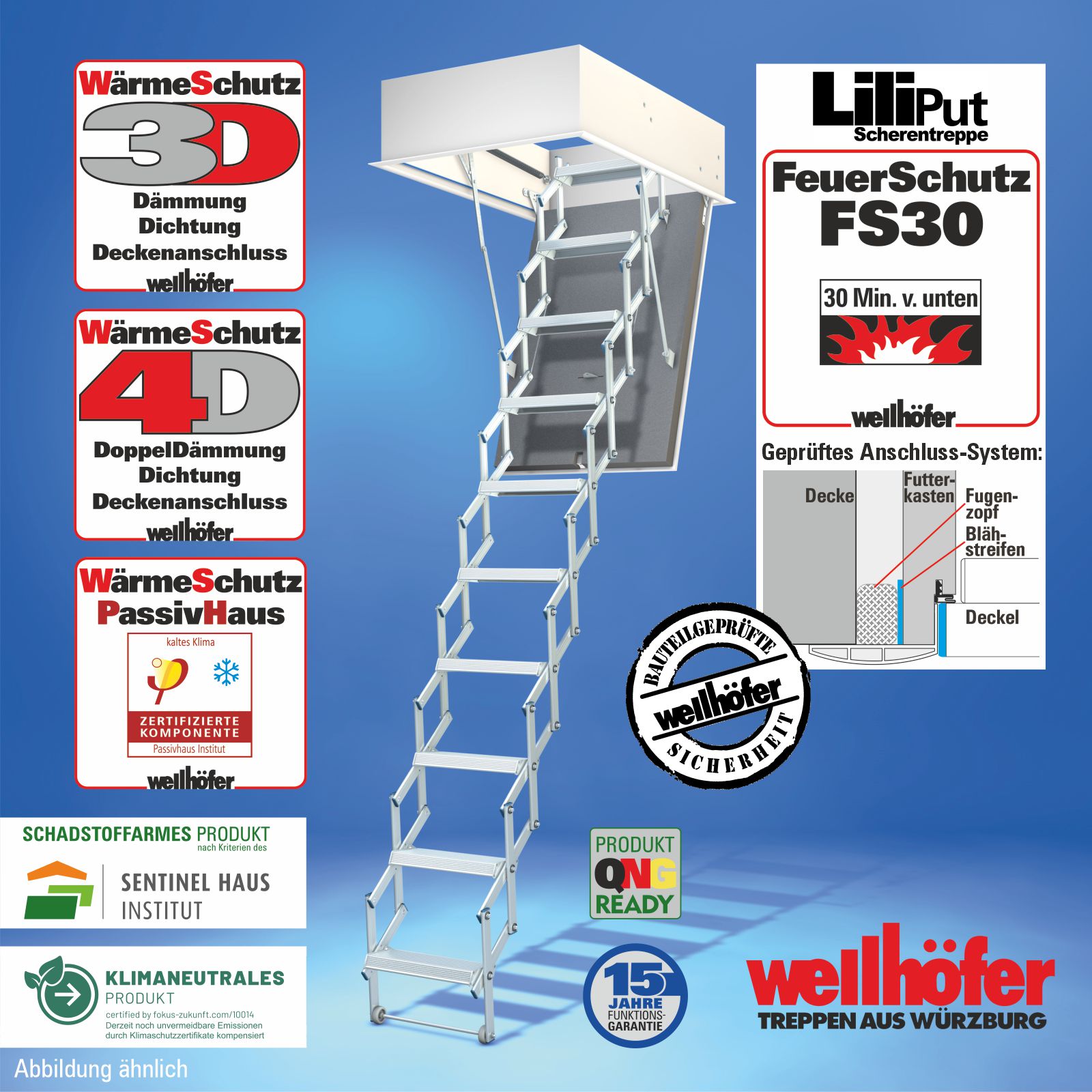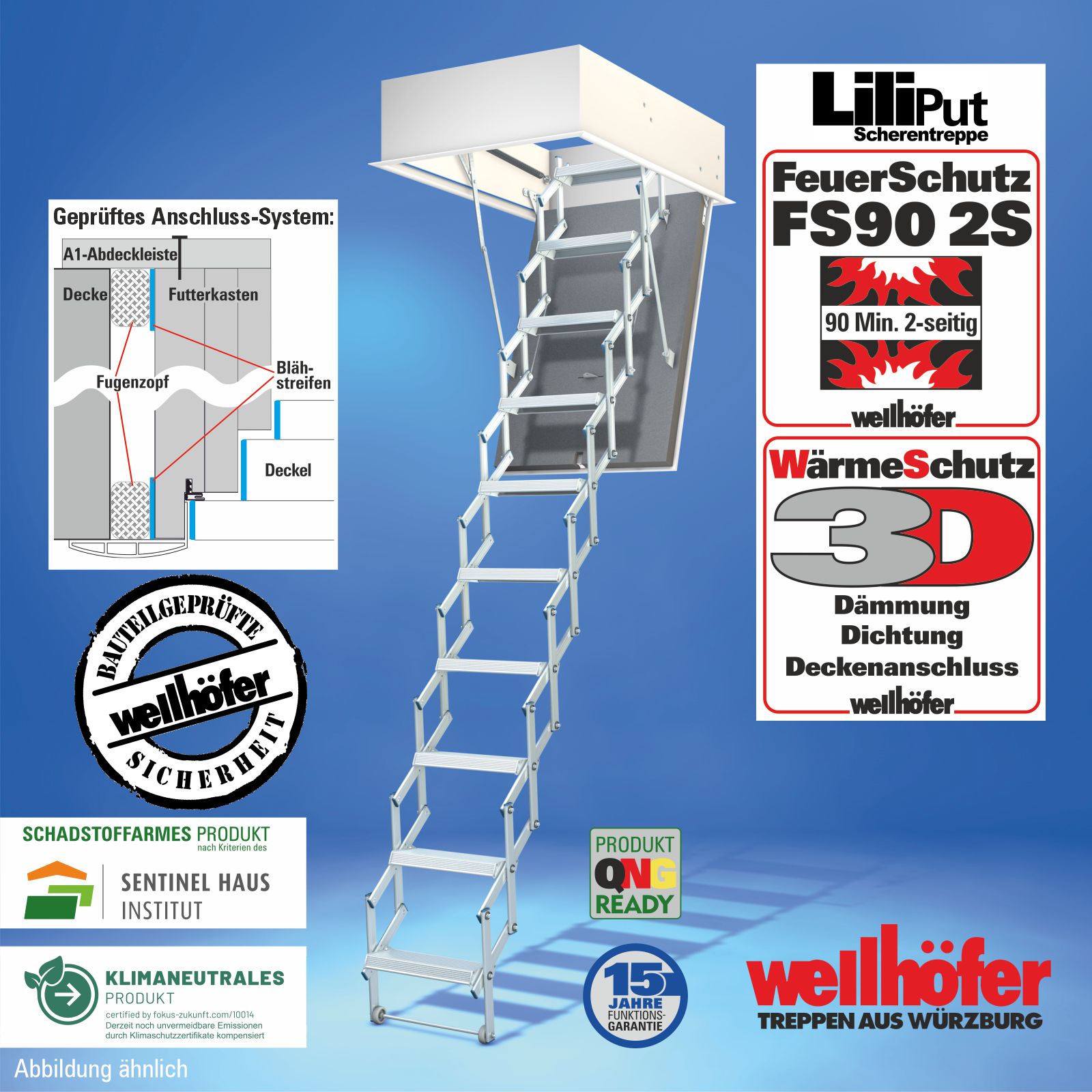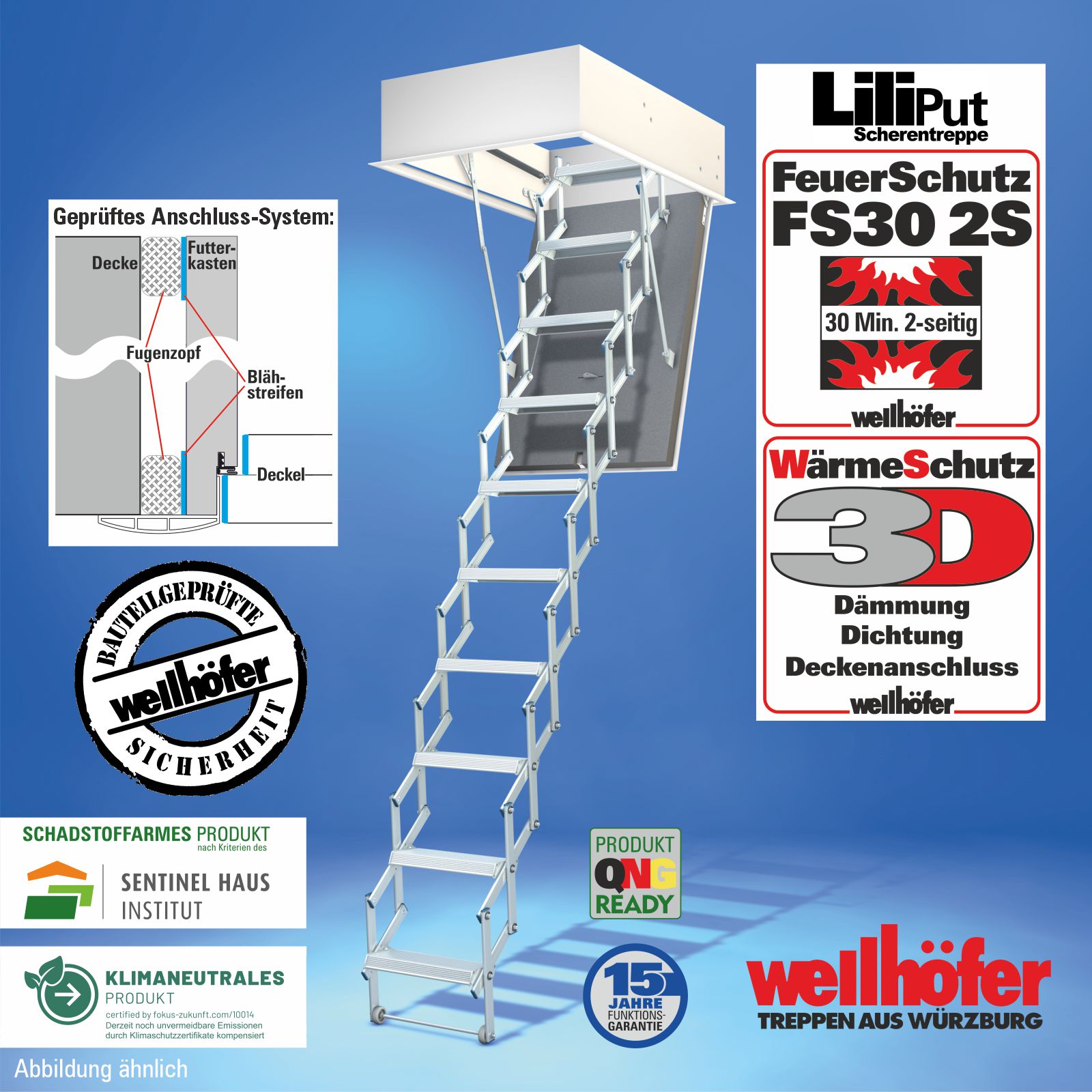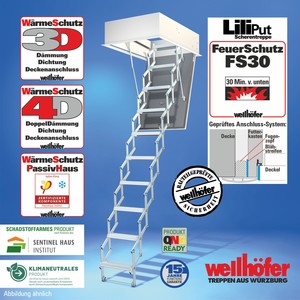 Scherentreppen Liliput mit FeuerSchutz FS30 (Feuerwiderstand 30 Minuten von unten)