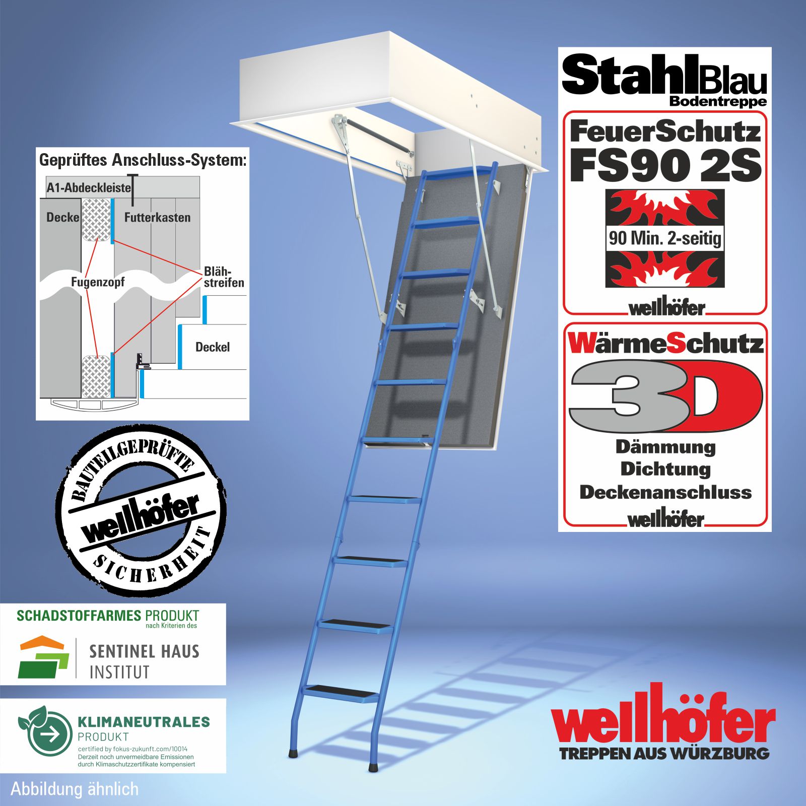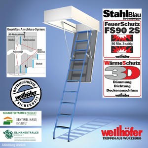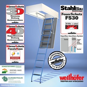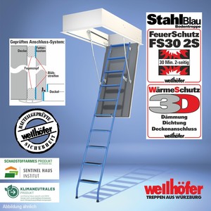 Bodentreppen StahlBlau mit FeuerSchutz FS30 (Feuerwiderstand 30 Minuten von unten)