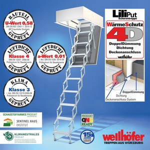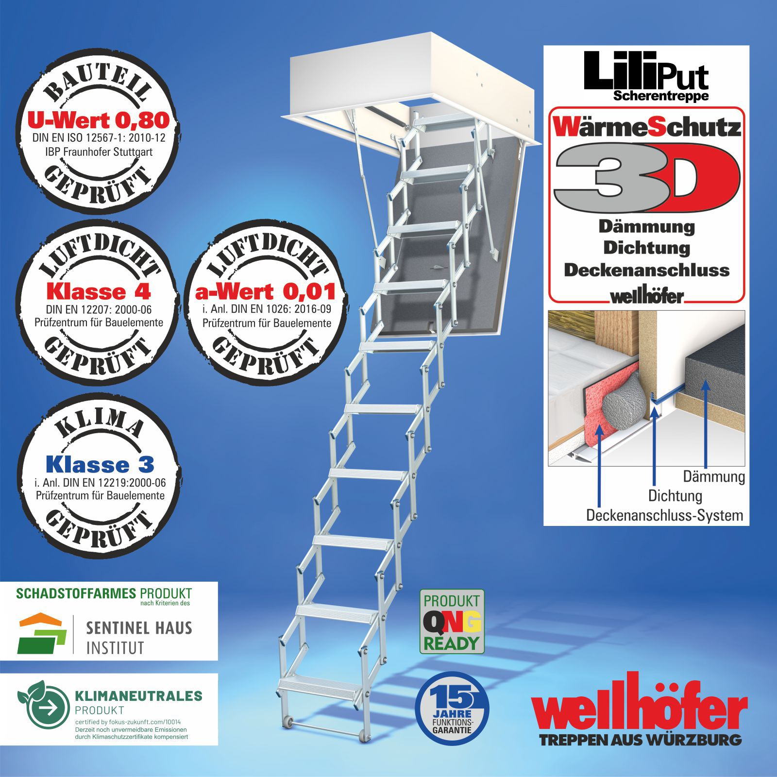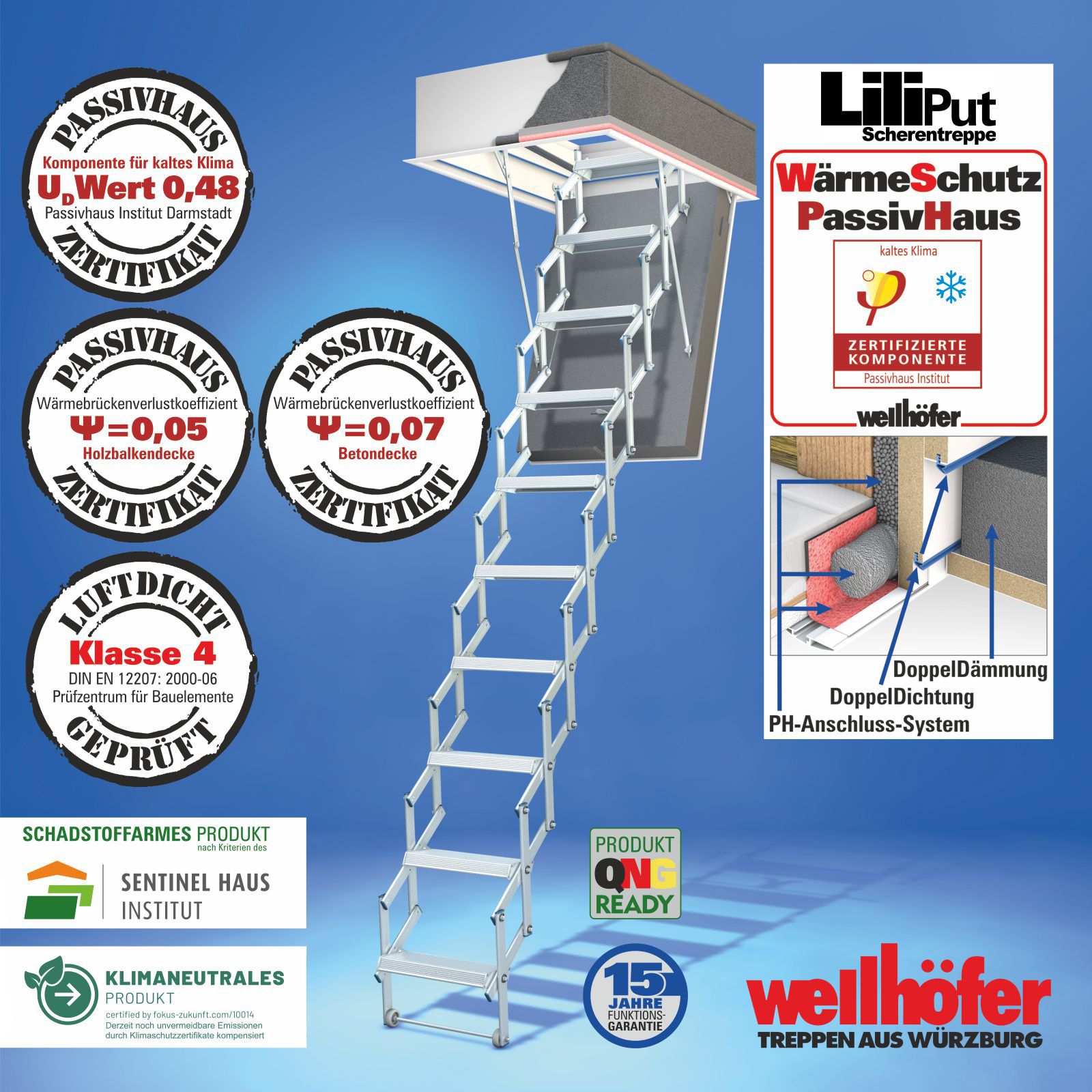 Bodentreppe Liliput (Scherentreppe, Aluminium) mit bestem WärmeSchutz WSPH (zertifizierte Passivhaus-Komponente):