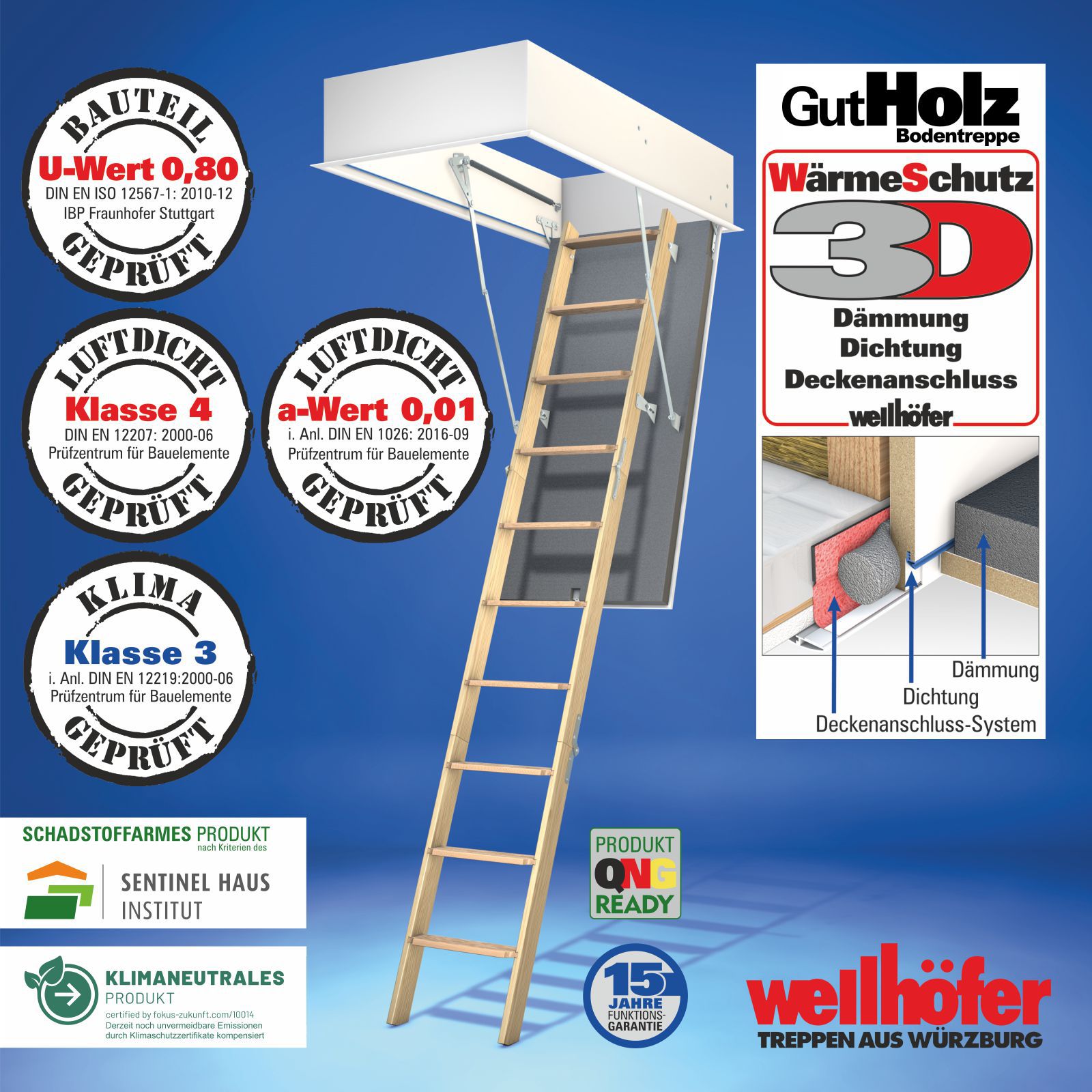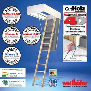 Bodentreppe GutHolz (dreiteilig, Holz) mit besserem WärmeSchutz WS4D: